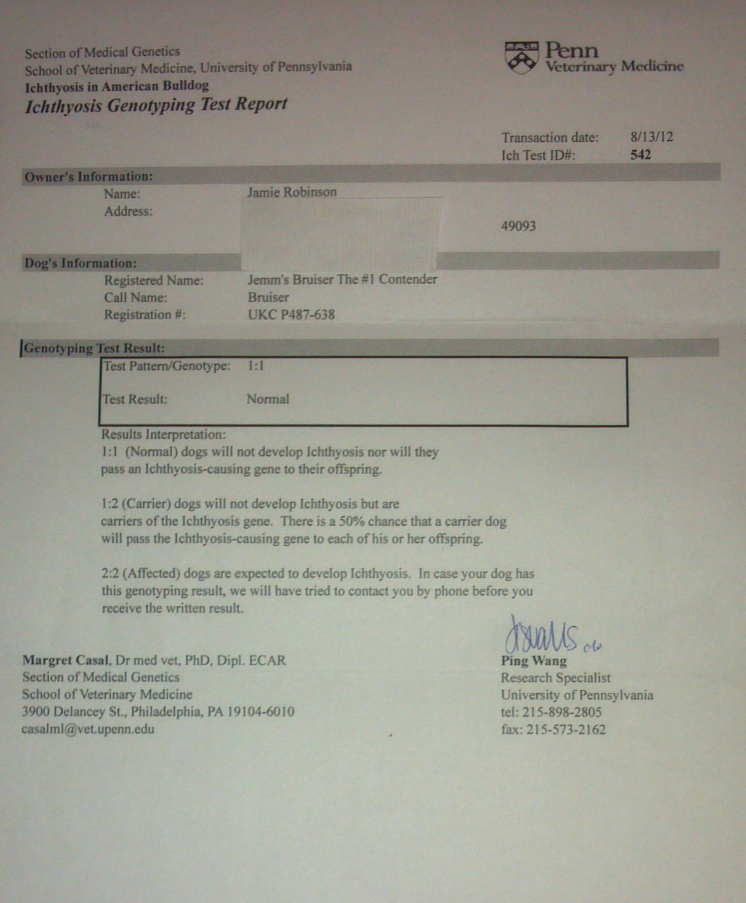 Pedigree for UWP, Champion Jemm's Bruiser The #1 Contender, Sch BH, GDT, IDT3, UPF-WPTIII, APA-WPTIII, PH .22/.22 No DJD, NCL-Clear, ICH-Clear