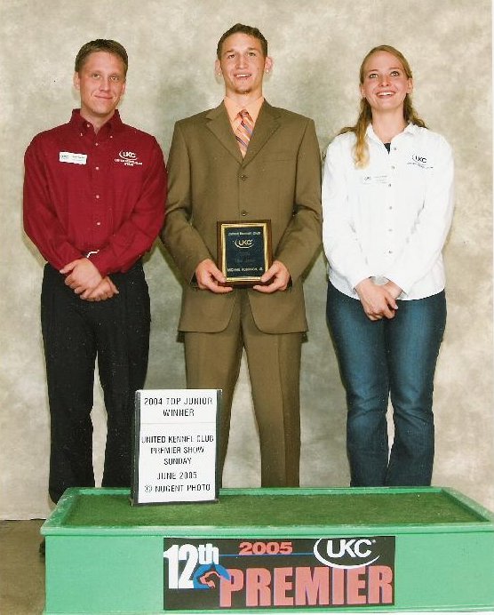 Michael was #2 Open Senior handler in his region in the UKC for 2004 and #1 Junior weight pull handler in his region in UKC in 2004. Michael was also awarded UKC's first ever Total Junior for 2004.