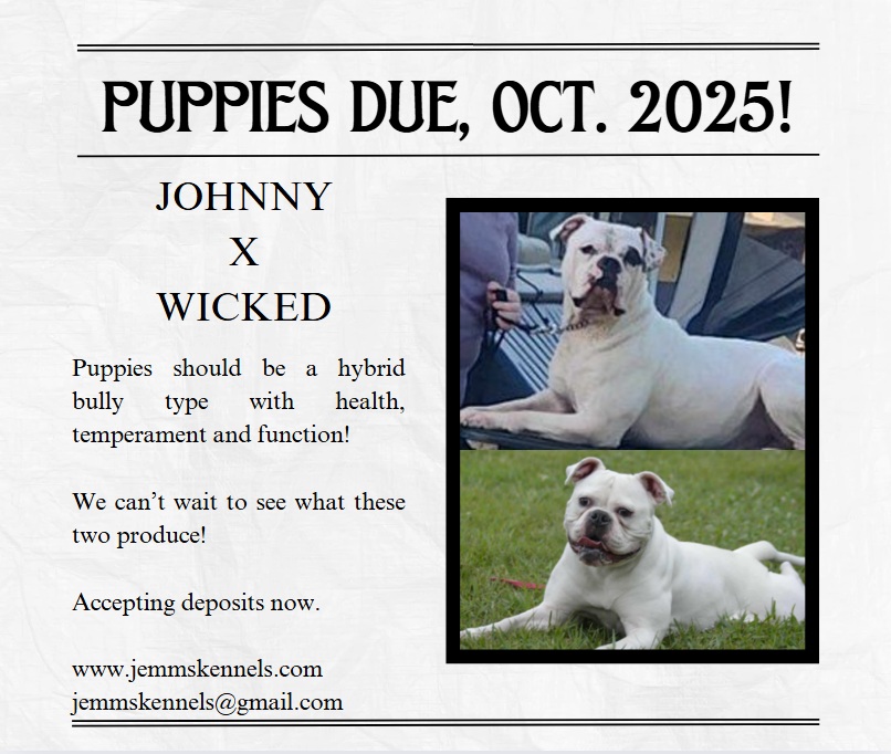 Please contact us for pricing and availability: jemmskennels@gmail.com